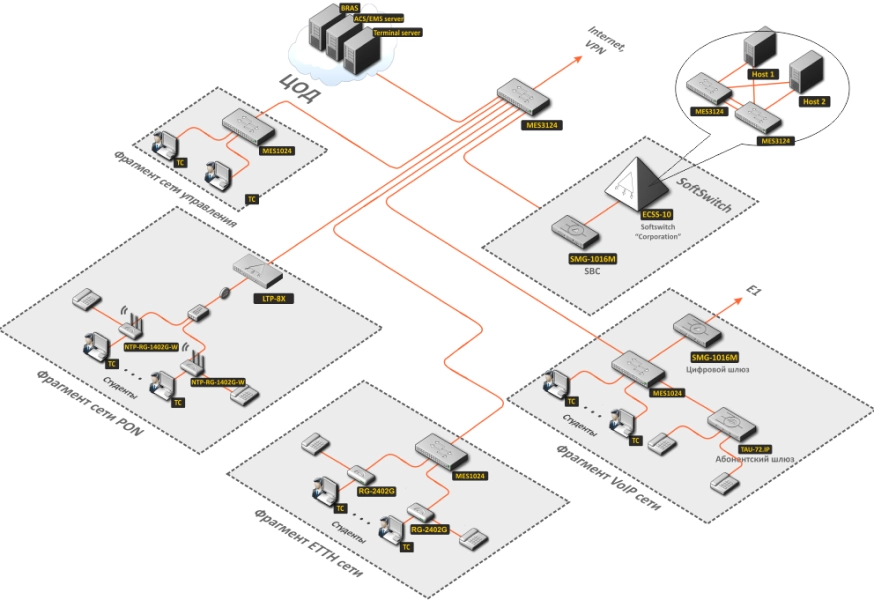 Кроме того оборудование Eltex позволяет в полной мере изучить работу мультисервисных сетей связи (сетей NGN). А именно: